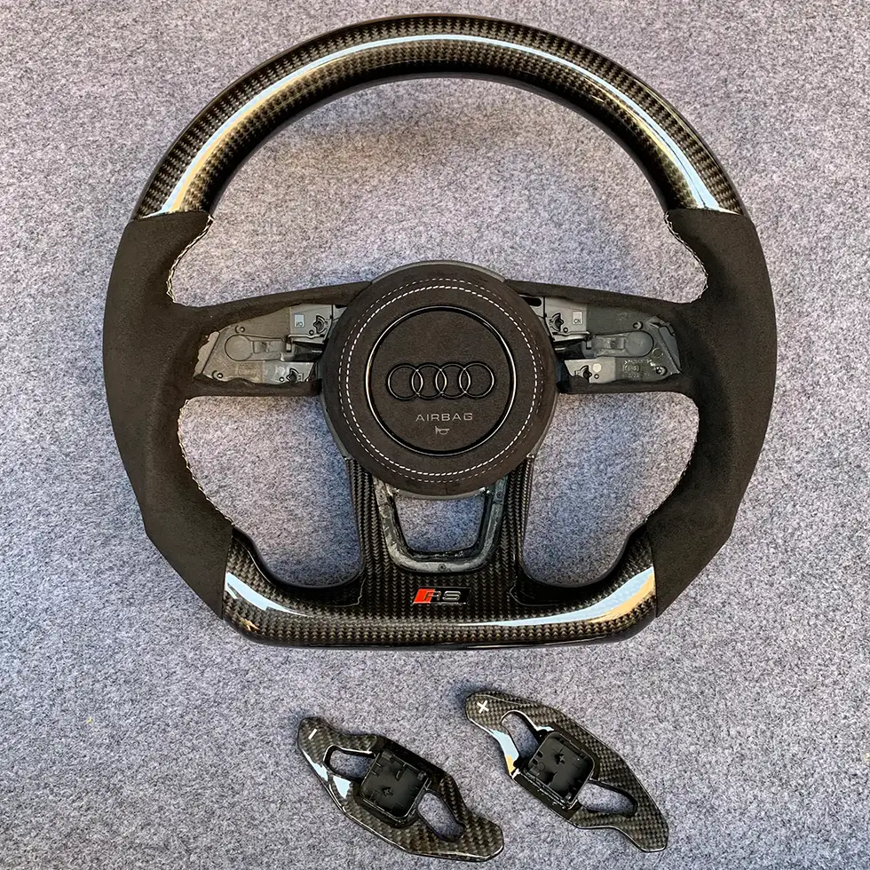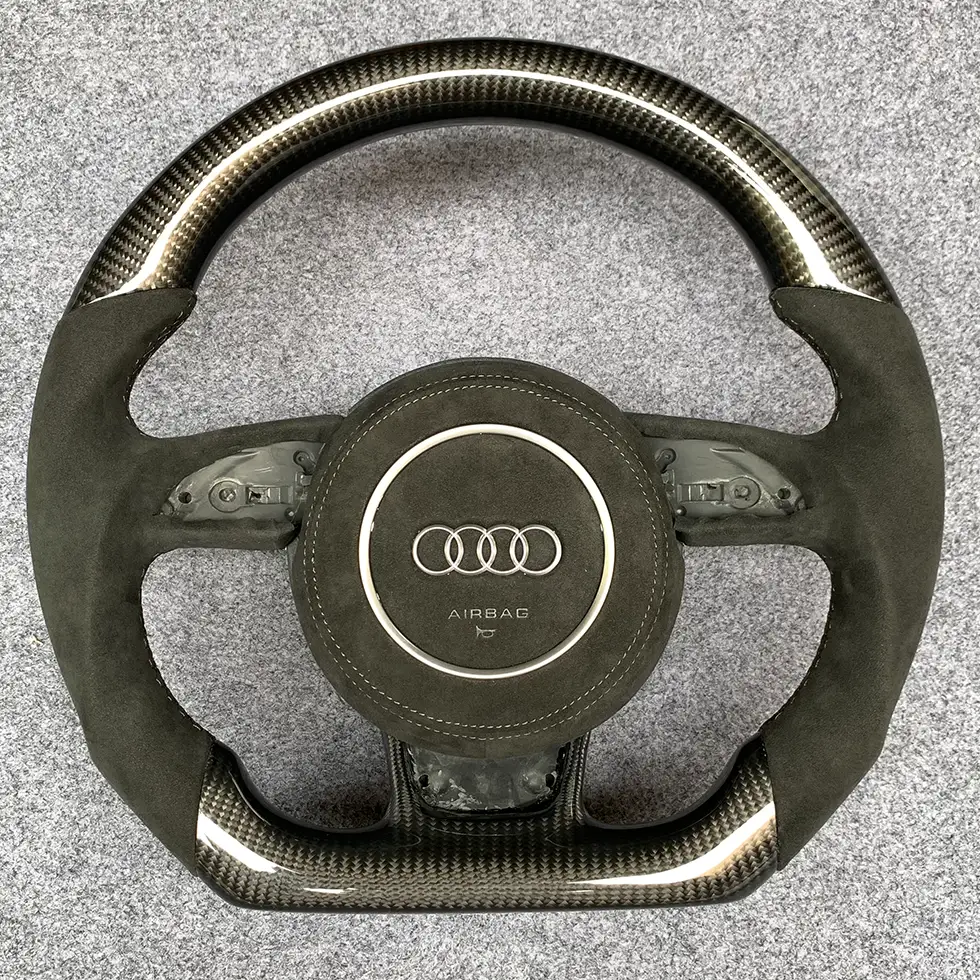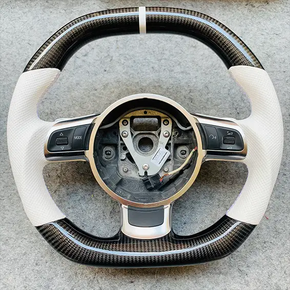 Elevate the luxury and performance of your Audi with our sport steering wheel, upholstered in genuine leather. Ergonomically designed for superior grip and precise response, it is compatible with models such as A3, A4, A5, Q3, and Q5. This high-quality steering wheel not only enhances the interior aesthetics but also optimizes your driving experience.